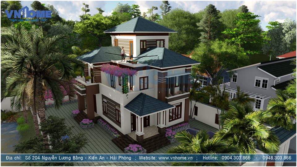 Thiết kế biệt thự hiện đại 3 tầng mái Thái - VNH BTHD 0020
