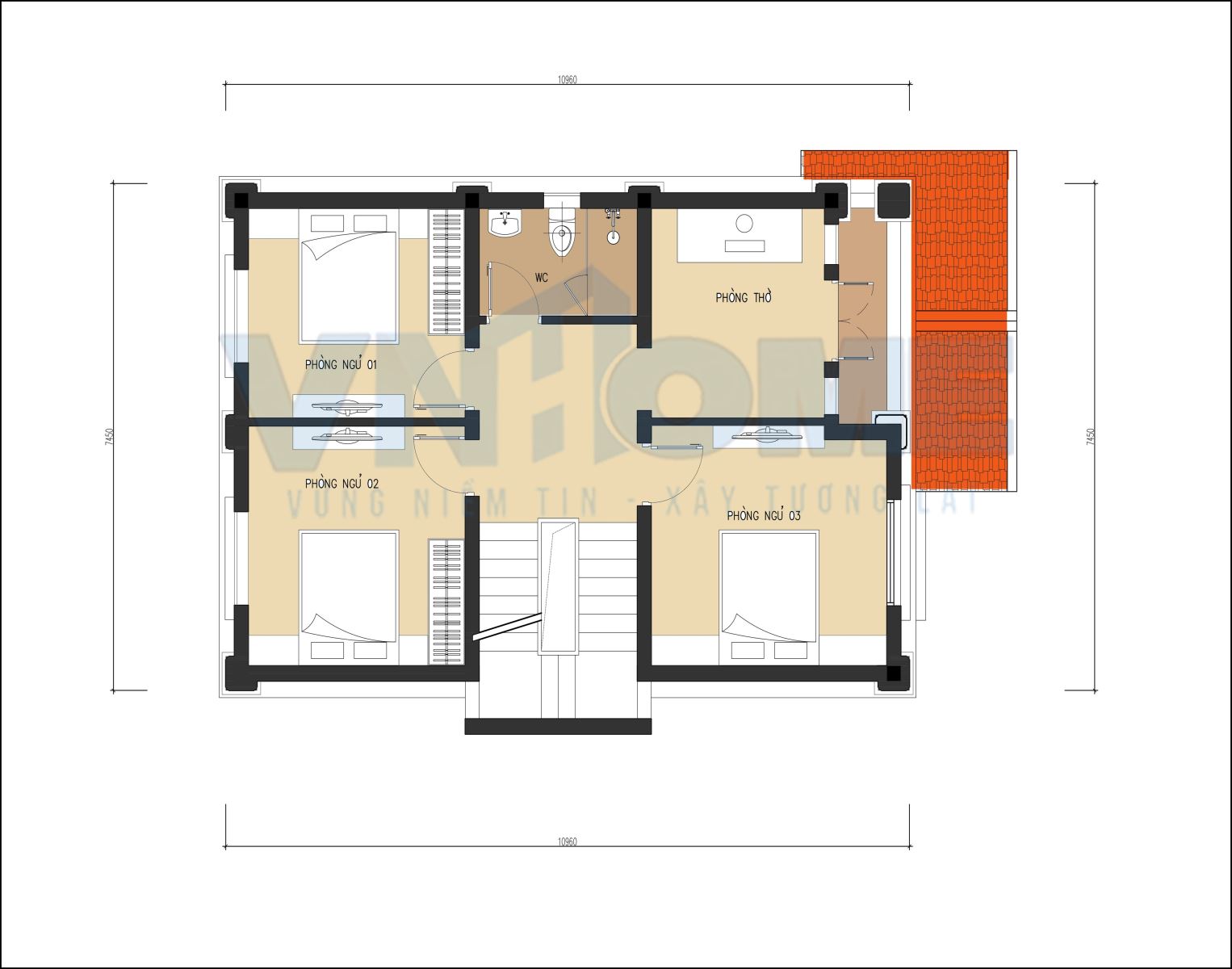 Mặt bằng công năng tầng tum của căn biệt thự tại Hải Phòng